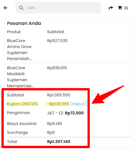 Contoh hasil penggunaan voucher diskon / promo saat checkout