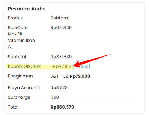Lanjutkan ke halaman checkout, maka voucher yang valid akan otomatis mengurangi total biaya pesanan.