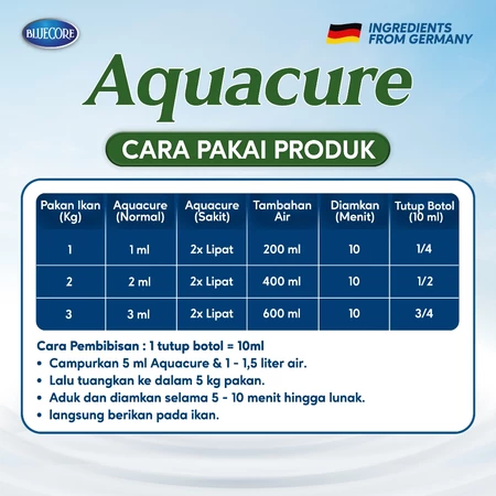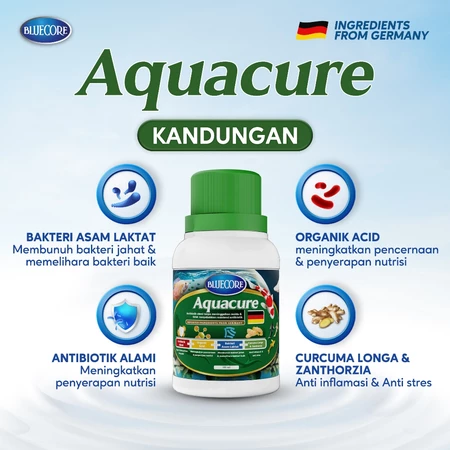 Aquacure aman digunakan setiap hari karena terbuat dari bahan-bahan import berkualitas German, produk ini mengandung 2 herbal pilihan, 5 bakteri baik, dan organic acid yang berperan sebagai pendongkrak imunitas dalam menghadapi virus dan bakteri.