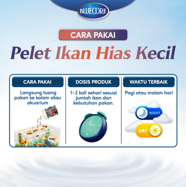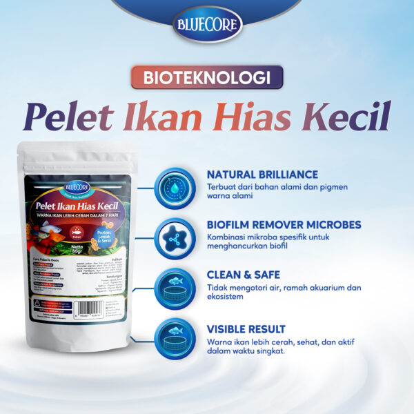 Dengan Bluecore Pelet Ikan Hias Kecil, Anda tidak hanya memberi makan, tapi juga memberikan nutrisi terbaik untuk kehidupan ikan hias Anda setiap hari