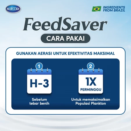 Feed Saver adalah booster plankton alami yang dirancang untuk meningkatkan populasi plankton di tambak dan kolam budidaya, sehingga mengurangi penggunaan pakan buatan hingga 10%.