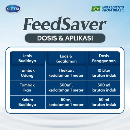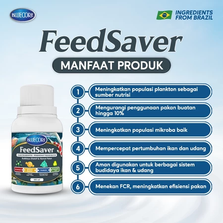 Dengan kombinasi nutrisi organik, mineral alami, probiotik, dan penstabil air, Feed Saver mampu menekan FCR (Feed Conversion Ratio), meningkatkan efisiensi pakan, dan memperbaiki kualitas air dalam sistem budidaya ikan & udang.