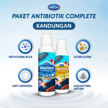 Infeksi pada ikan bisa terjadi kapan saja, terutama akibat stres, air yang tidak stabil, atau penularan dari lingkungan. Paket Antibiotik Complete dari Bluecore menghadirkan kombinasi antara BlueMed dan YellowMed, diformulasikan untuk mengatasi infeksi dari berbagai patogen sekaligus menjaga stabilitas sistem akuarium.